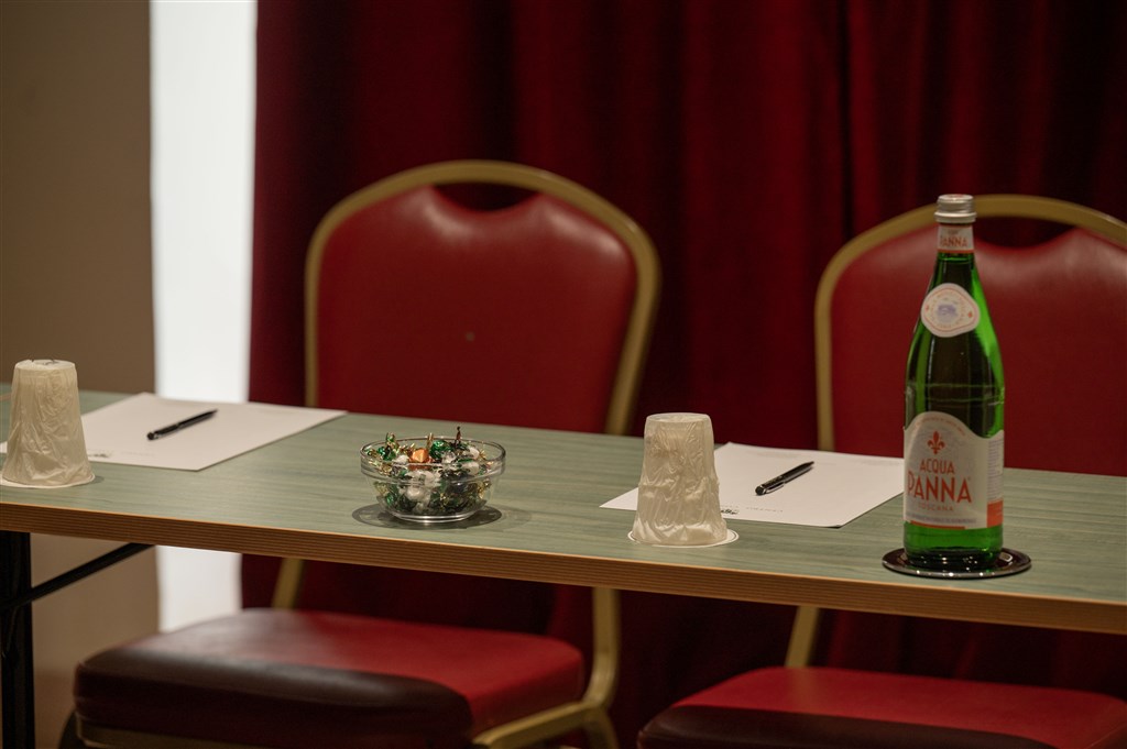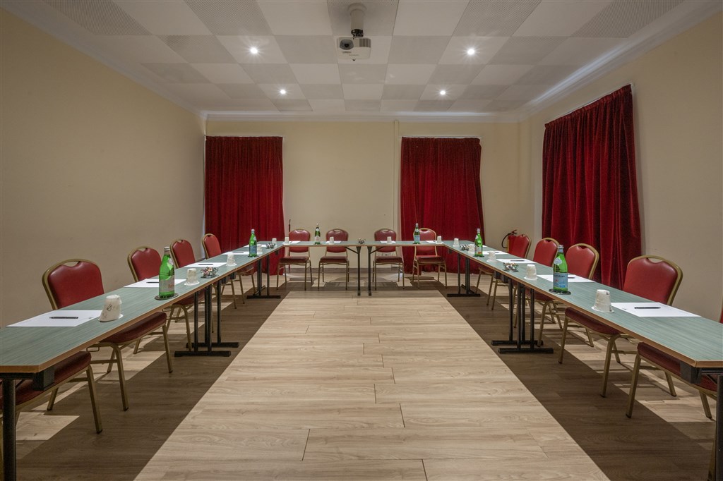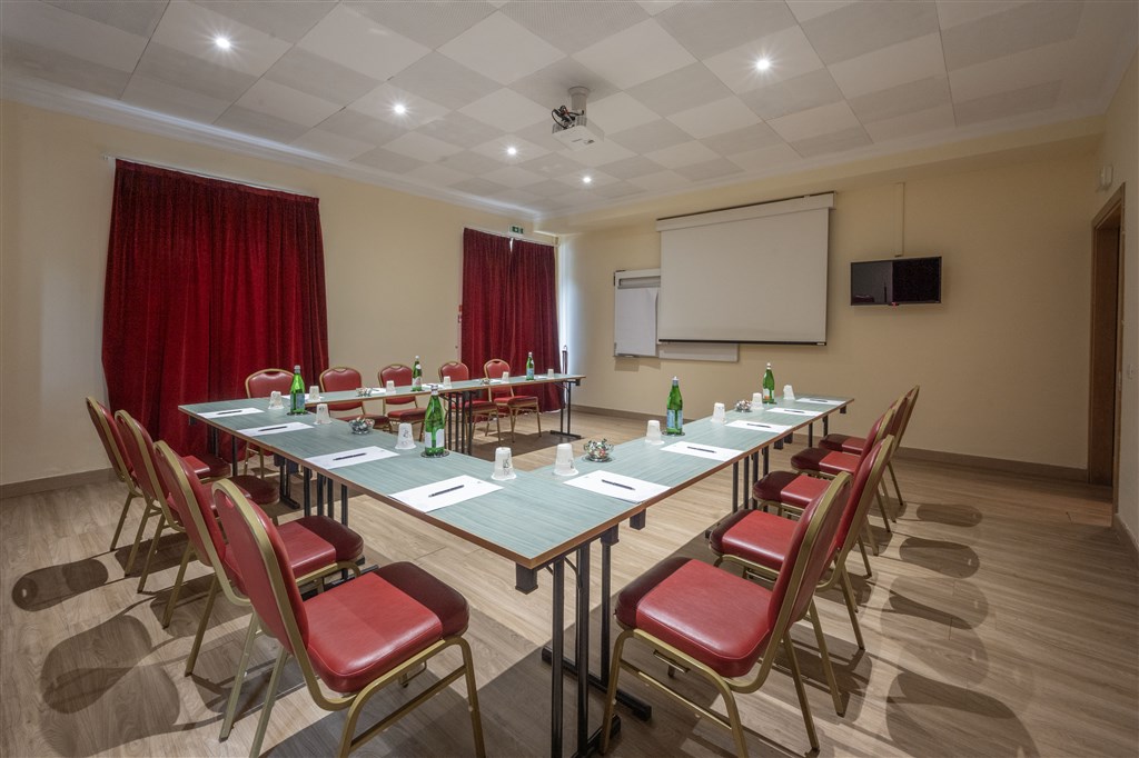flipchart and screen, microphones, wireless internet access, pads and pens, mineral water.