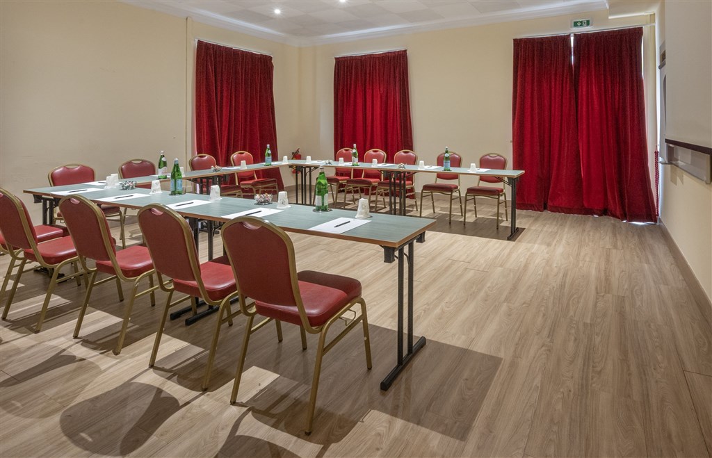 en disposition fer à cheval, 12 en salle de classe, 20 en disposition théâtre ou banquet.
